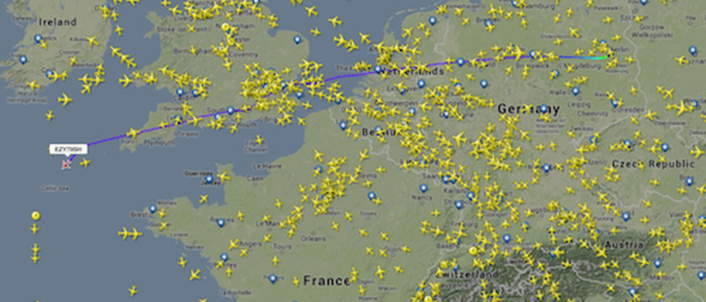 Zoals hieronder op het plaatje te zien is, is er verminderd vliegverkeer boven Frankrijk en vermijden de luchtvaartmaatschappijen het Franse luchtruim.